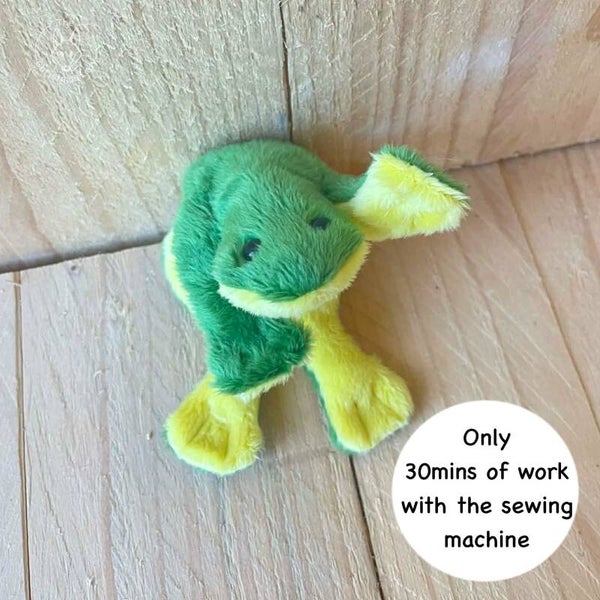 This downloadable sewing pattern is perfect for crafters who are making their first plush, or more experienced sewists who are looking for a quick and fun project. These frogs can be made with the sewing machine, or by handsewing.